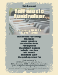 $10 at doors only - 50/50 - raffle baskets - open to the public (Michigan charitable gaming license X13073). Proceeds to benefit The Bruce Post VFW capital fund, auxiliary, clubroom improvements, and I heart dogs.